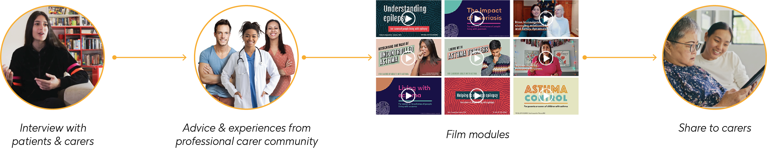 We first interviewed patients with chronic conditions to unveil the real needs of carers and their challenges. Next, we reached out to the professional carer community and partner Online Opinion Leaders (OOLs) to share their actionable advice and experiences through film modules to share with these home-based carers.