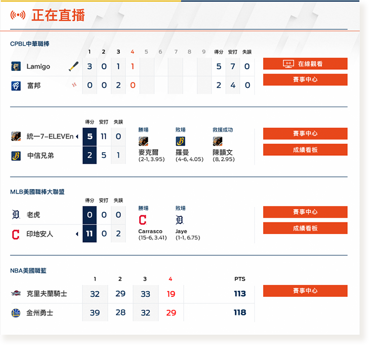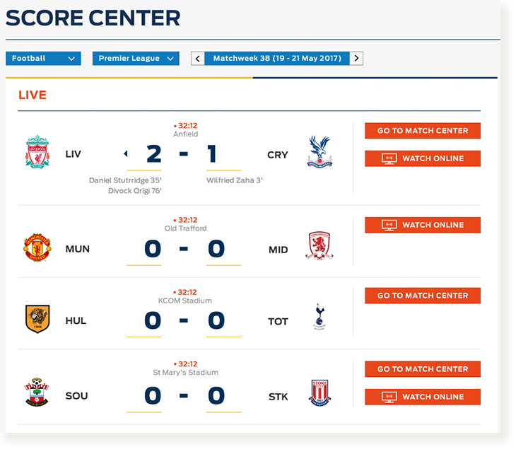 SCORE CENTER - All the games that matter most to you in one easy to use dashboard. Access relevant match center pages at the touch of a button.