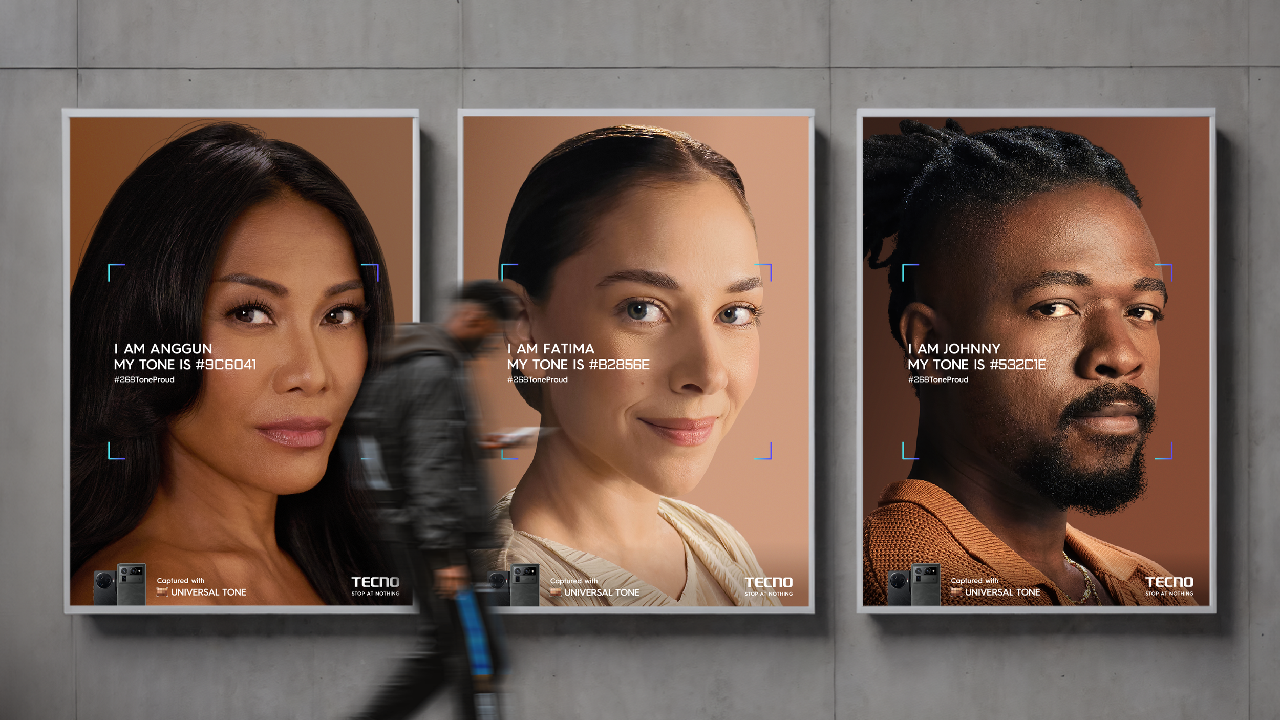 In a follow-up post, each celebrity revealed that TECNO had responded to their call for greater inclusivity by introducing Universal Tone as a solution. They shared a photo featuring a unique HEX code representing their natural skin colour—derived through Universal Tone—which media outlets could use as a reference for balancing their skin tone in images. These key visuals were later applied to OOH media, driving further awareness.