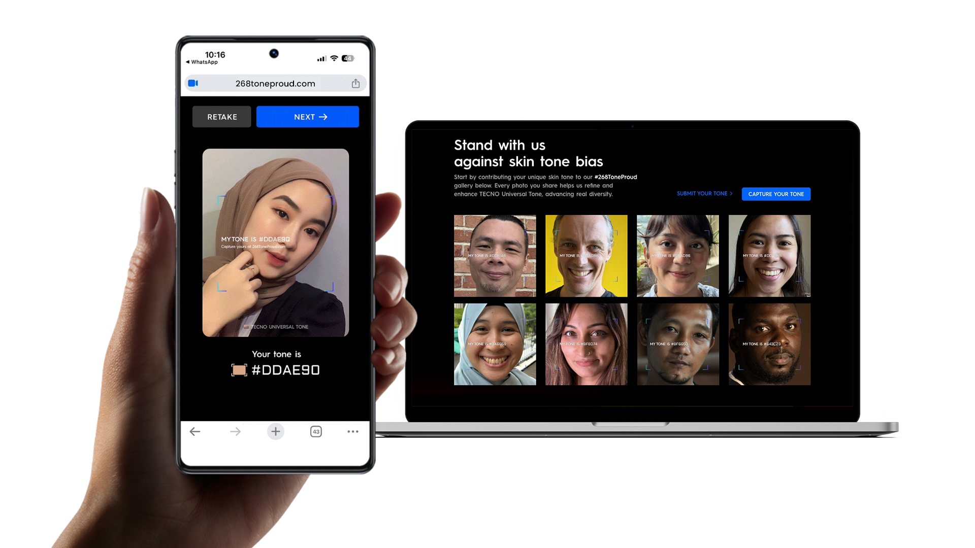 We helped TECNO launch #268ToneProud, a social-first campaign that empowers people worldwide to authentically represent themselves through accurate skin tone capture.